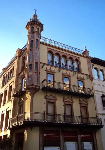 Lo que hace particular este edificio es una escalera que desde el exterior se ve una planta poligonal.Fue realizado entre 1915 y 1917 por petición del Marqués de Villamarta por el arquitecto de Aníbal González.