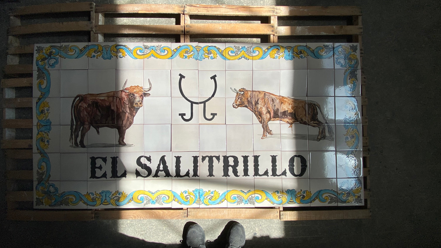Reproduccion de un mural para la puerta de un Cortijo con mucha solera. Estaba documentado que desde su construcción hubo ahi un mural con este diseño y así lo hicimos.